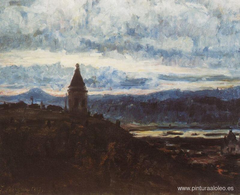Te ofrecemos una reproducción artesanal en lienzo de la famosa obra de arte 'Vista de Krasnoyarsk' de Vasily Surikov, del Museo de Reproducción.