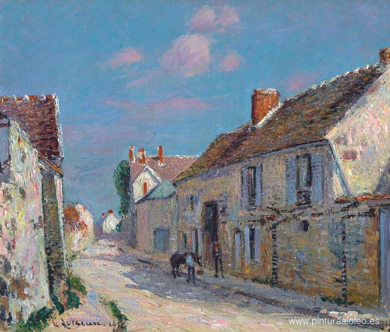 Te ofrecemos una reproducción artesanal en lienzo de la famosa obra de arte 'Calle en Ennery' de Gustave Loiseau, del Museo de Reproducción.