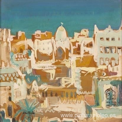 Te ofrecemos una reproducción artesanal en lienzo de la famosa obra de arte 'ciudad árabe' de Walter Battiss, del Museo de Reproducción.