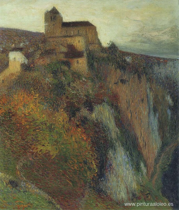 Te ofrecemos una reproducción artesanal en lienzo de la famosa obra de arte 'Saint-Cirq-Lapopie por la tarde' de Henri Martin, del Museo de Reproducción.