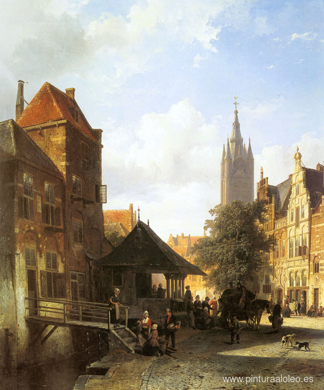 Te ofrecemos una reproducción artesanal en lienzo de la famosa obra de arte 'Springer Cornelis figuras en una calle de Delft' de Cornelis Springer, del Museo de Reproducción.