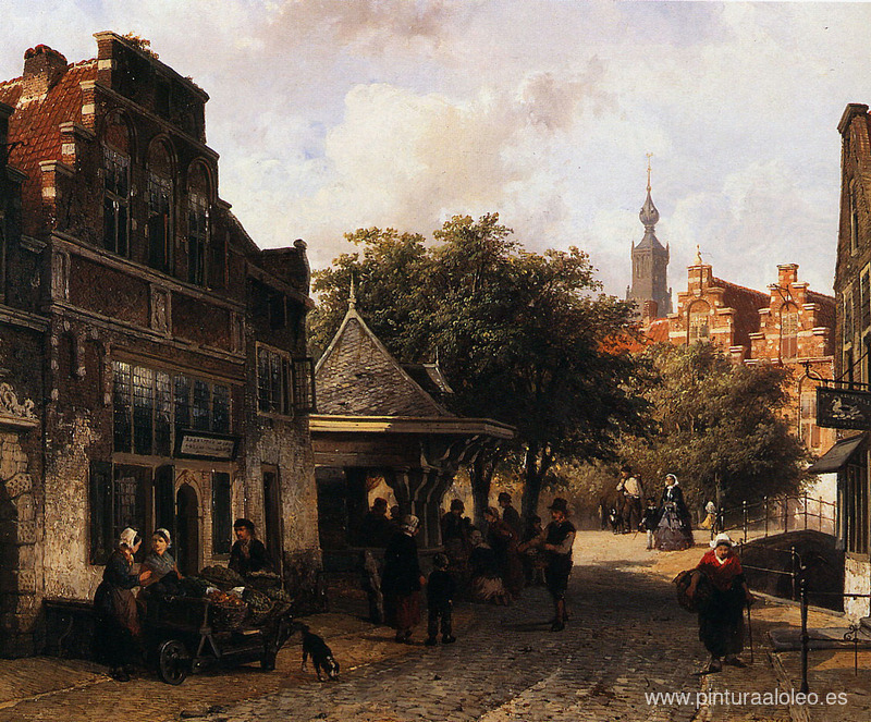 Te ofrecemos una reproducción artesanal en lienzo de la famosa obra de arte 'Vista de Oudewater' de Cornelis Springer, del Museo de Reproducción.