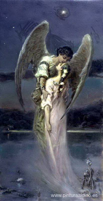 Te ofrecemos una reproducción artesanal en lienzo de la famosa obra de arte 'chica con ángel' de Wilhelm Kotarbinski, del Museo de Reproducción.