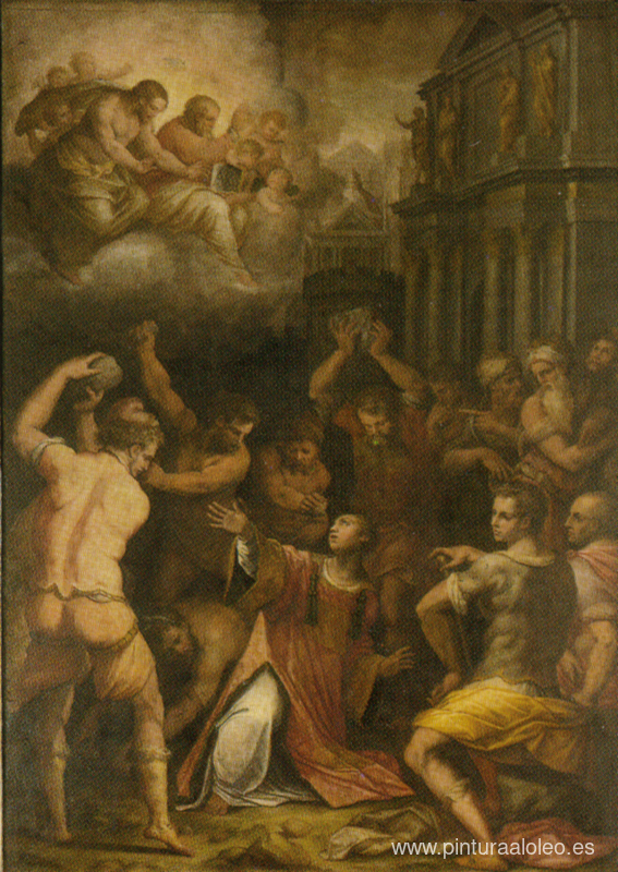 Te ofrecemos una reproducción artesanal en lienzo de la famosa obra de arte 'Lapidación de San Esteban' de Giorgio Vasari, del Museo de Reproducción.