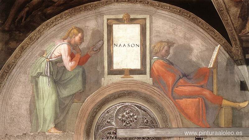 Te ofrecemos una reproducción artesanal en lienzo de la famosa obra de arte 'Los Ancestros de Cristo: Nahshon' de Michelangelo, del Museo de Reproducción.