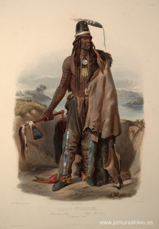 Te ofrecemos una reproducción artesanal en lienzo de la famosa obra de arte 'Abdih-Hiddisch. Un Jefe Minatarre, lámina 24 del Volumen 1 de 'V' de Karl Bodmer, del Museo de Reproducción.