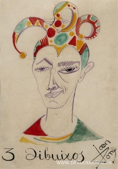 Te ofrecemos una reproducción artesanal en lienzo de la famosa obra de arte 'Arlequín' de Joan Ponc, del Museo de Reproducción.