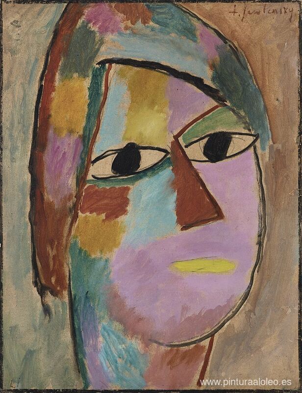 Te ofrecemos una reproducción artesanal en lienzo de la famosa obra de arte 'Cabeza mística: cabeza de mujer - boca amarilla' de Alexej von Jawlensky, del Museo de Reproducción.