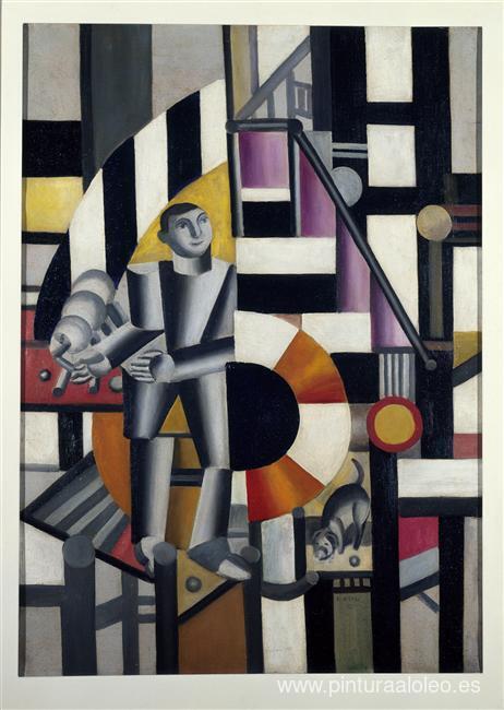 Te ofrecemos una reproducción artesanal en lienzo de la famosa obra de arte 'El hombre de la pipa' de Fernand Leger, del Museo de Reproducción.
