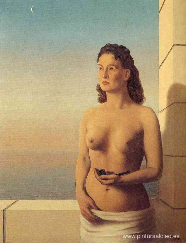 Te ofrecemos una reproducción artesanal en lienzo de la famosa obra de arte 'Libertad de mente' de Rene Magritte, del Museo de Reproducción.
