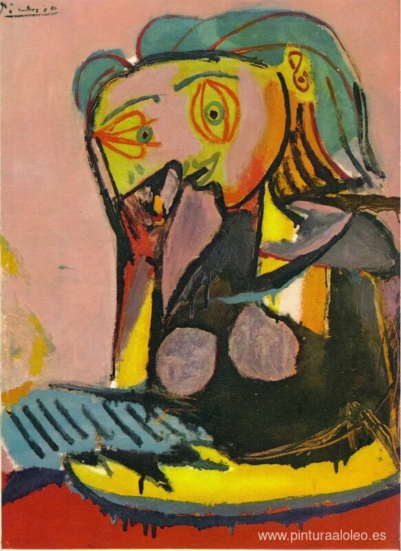 Te ofrecemos una reproducción artesanal en lienzo de la famosa obra de arte 'mujer inclinada' de Pablo Picasso, del Museo de Reproducción.