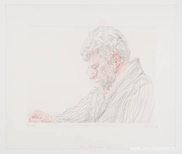 Te ofrecemos una reproducción artesanal en lienzo de la famosa obra de arte 'R. B. Vemos' de Avigdor Arikha, del Museo de Reproducción.