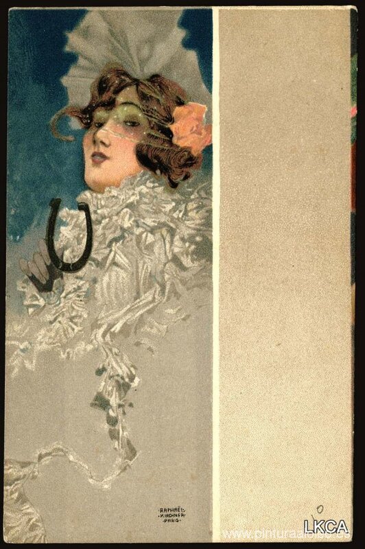 Te ofrecemos una reproducción artesanal en lienzo de la famosa obra de arte 'retratos de niñas con borde gris' de Raphael Kirchner, del Museo de Reproducción.