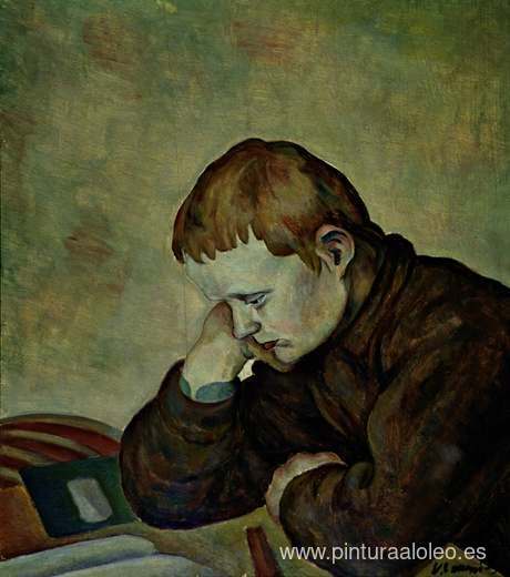 Te ofrecemos una reproducción artesanal en lienzo de la famosa obra de arte 'un niño leyendo' de Vilho Lampi, del Museo de Reproducción.
