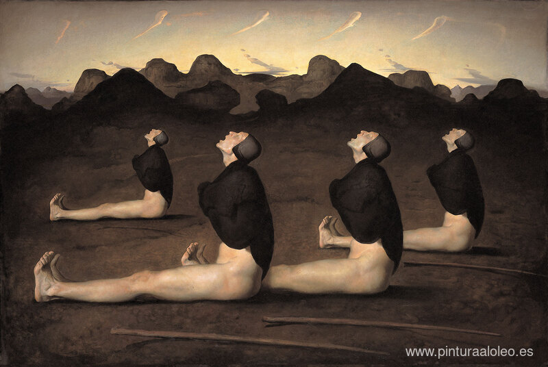 Te ofrecemos una reproducción artesanal en lienzo de la famosa obra de arte 'Amanecer' de Odd Nerdrum, del Museo de Reproducción.