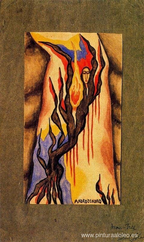 Te ofrecemos una reproducción artesanal en lienzo de la famosa obra de arte 'hombre arbol ' de Xul Solar, del Museo de Reproducción.