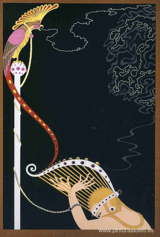Te ofrecemos una reproducción artesanal en lienzo de la famosa obra de arte 'Melodía encantada' de Erte, del Museo de Reproducción.