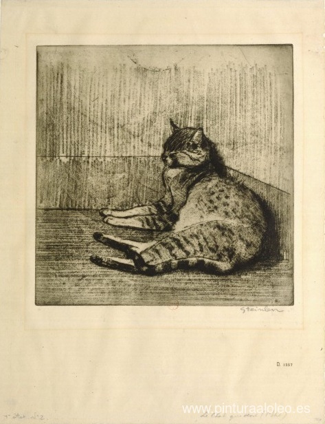 Te ofrecemos una reproducción artesanal en lienzo de la famosa obra de arte 'Gato durmiendo en un rincón ' de Theophile Steinlen, del Museo de Reproducción.