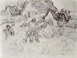 Mujer campesina, agachándose con una pala, desenterrando zanahor
