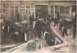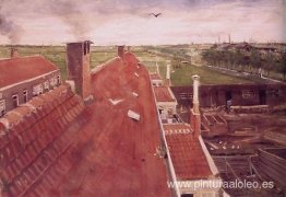 Doctor Gachet sentado a una mesa con libros y un vaso con ramita