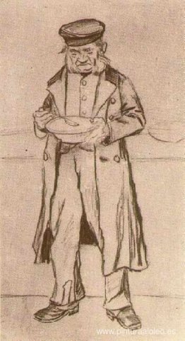 Hombre huérfano, vestido con blusa, con escoba y pipa